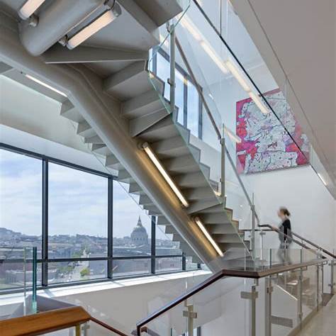 LightHouse genel merkezinde, tasarım ekibi malzeme değişiklikleri, dokunsal kenarları ve göze çarpan bir iç merdiven kullanarak yön bulmayı kolaylaştırdı. Yayınlanan proje notlarında, dolaşımı yönlendiren cilalı beton halka, ayak altında hissedilen metal geçiş şeritleri ve konuşmaların net kalması için kamusal alanlarda özenle uygulanan akustik işlemlerden bahsediliyor. Bunlar, herhangi bir stüdyonun belirleyebileceği basit önlemler ve görme engelli kullanıcılar için de netlik sağlıyor.