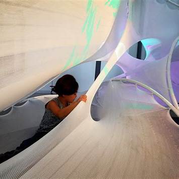 Teknik olarak bunlar tekstil-hibrit mimarilerdir: yerel sertlik için kalibre edilmiş, cam elyaf çubuklara bağlanmış ve derinlik algılama ve projeksiyon ile donatılmış örme membranlar. Yapısal mantık, yükleri düşük, bileşenleri modüler ve yüzeyleri esnek tutar, bu da okullar ve klinikler için üretim, nakliye ve yeniden yapılandırmayı yönetilebilir hale getirir. Bilimsel makaleler, sistemlerin yapısal tepki ile duyusal geri bildirimi birleştirmek için nasıl ayarlandığını açıklamaktadır.
