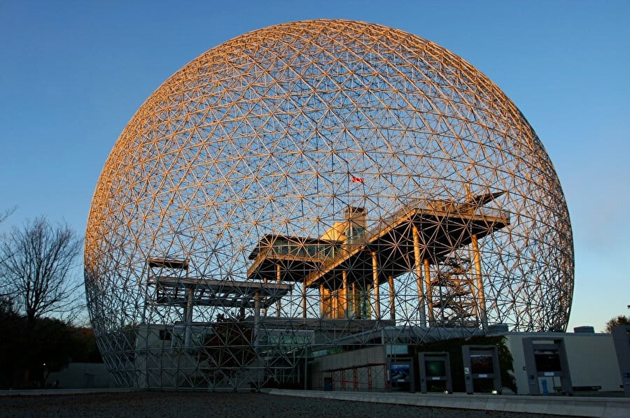 Buckminster Fuller hat nicht einfach nur Gebäude entworfen, er hat sich neu vorgestellt, was sie sein könnten, und seine geodätischen Kuppeln sind der beste Beweis dafür. Diese leichten, kugelförmigen Wunderwerke aus ineinandergreifenden Dreiecken sehen aus wie etwas aus einem Science-Fiction-Roman. Fullers große Idee war die Effizienz: Die Form der Kuppel benötigt weniger Material, um mehr Raum zu bedecken, und ist dadurch stark und überraschend einfach. Am bekanntesten ist wohl die Biosphäre der Expo ’67 in Montreal, eine riesige, glitzernde Kugel, die wie ein eigener Planet wirkt. Der netzartige Rahmen der 1967 errichteten Kuppel spiegelte den Innovations- und Entdeckergeist des Atomzeitalters wider. Diese Kuppeln waren eine kühne Aussage über die Lösung von Problemen mit Kreativität und haben alles inspiriert, von Gewächshäusern bis hin zu modernen Öko-Häusern.