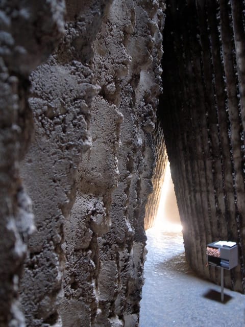 Die 2007 in Mechernich, Deutschland, fertiggestellte Bruder-Klaus-Kirche erhebt sich als Kubus aus karbonisierten Betonaußenwänden, die an die Ursprünglichkeit der Materie und die Erinnerung an Feuer erinnern. Im Inneren verbindet ein unregelmäßiges Oculus den geschlossenen Raum mit dem Himmel, indem es den gefrorenen Bleiboden mit wechselndem Licht überflutet und jeden Regentropfen oder Sonnenstrahl in ein vorübergehendes Ritual der Kontemplation verwandelt.