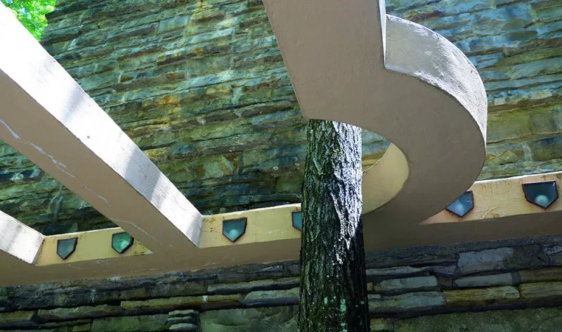 Frank Lloyd Wright ließ sich von der natürlichen Schönheit des Landes inspirieren, insbesondere von dem Wasserfall, der unter dem Haus verläuft. Er glaubte an eine Architektur im Einklang mit der Natur und das Waterfall House ist ein perfektes Beispiel für seine Philosophie.