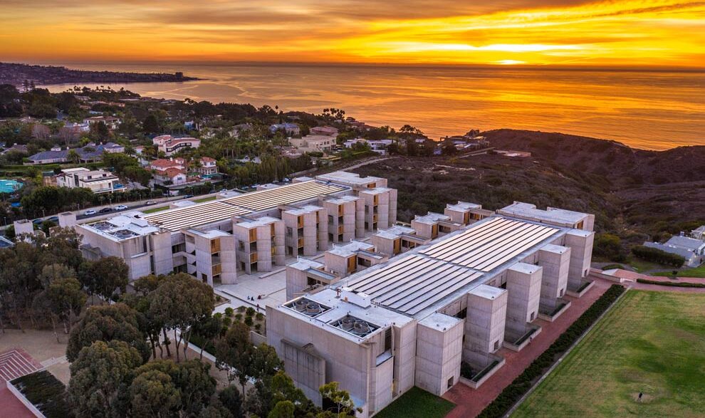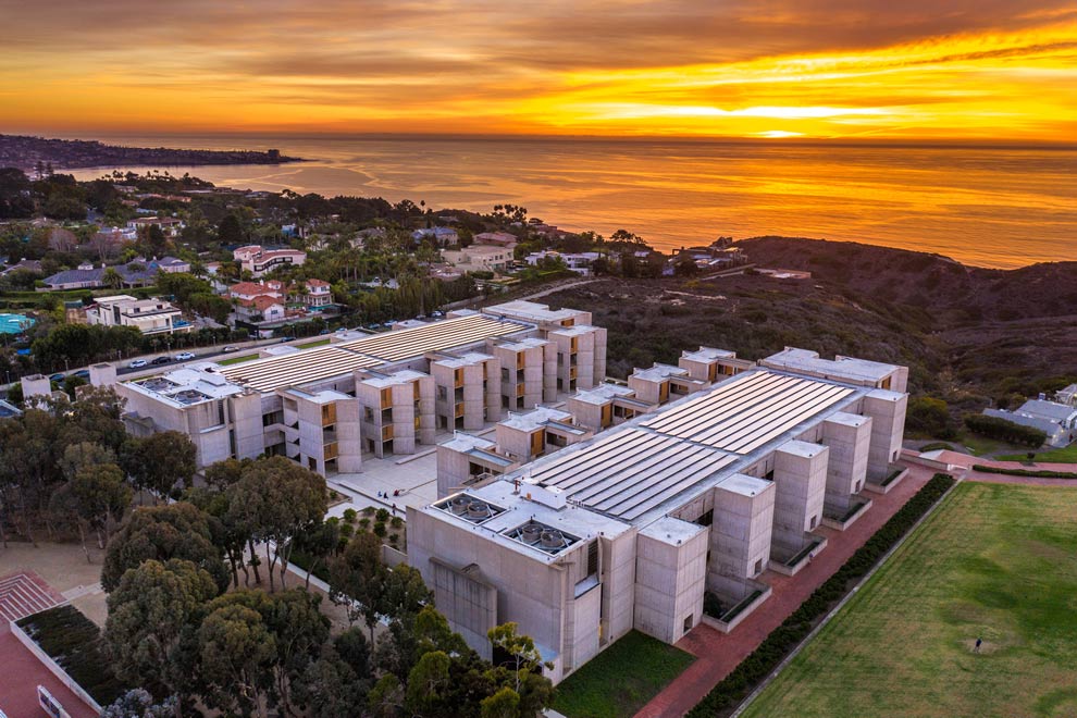 Kahn gestaltete diesen Ort wie ein modernes Kloster: Zwei disziplinierte Flügel definieren einen zentralen Platz, der die Gemeinschaft nach innen hält, während der Blick nach außen auf den Horizont gelenkt wird. Der große Innenhof öffnet sich an einem Ende zum Pazifik und am anderen Ende zu einem Waldstück und verwandelt den Ankunftsort in einen sanften Übergang vom Anblick zur Kontemplation. Selbst die Leere des Innenhofs ist beabsichtigt und wird durch die Idee eines steinernen „Platzes” verstärkt, der eigentlich eine zum Himmel gerichtete Fassade ist.