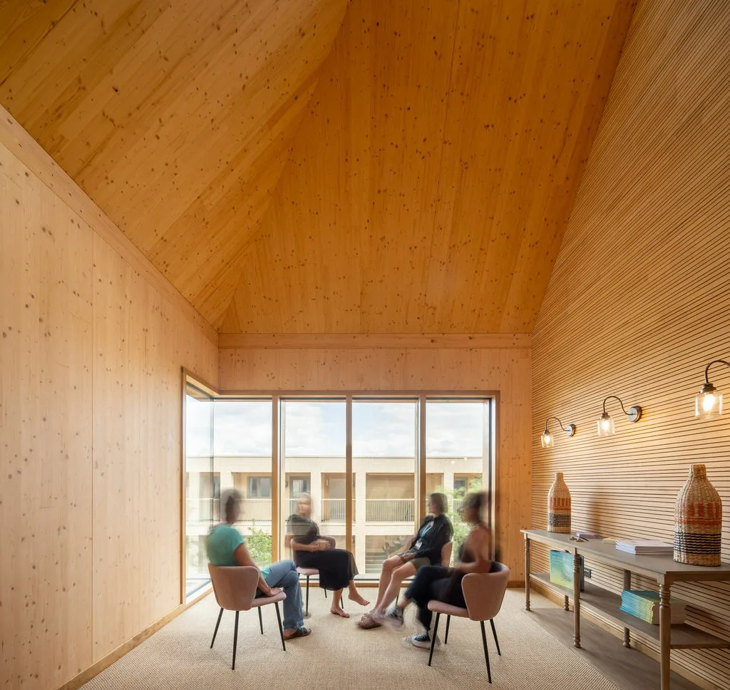 Hope Street, Hampshire, United Kingdom. Snug Architects and One Small Thing have completed a residential center for women and children affected by the justice system, translating trauma-focused values into the plan, materials, and program. The campus feels more like a home than an institution, with layered thresholds, micro-shelters, clear circulation, and a therapeutic garden. The case study documents how choices such as the mass timber structure, warm brick, and the “Hope Room” on the upper floor dedicated to group therapy were developed in collaboration with experienced women to provide a sense of safety, dignity, and control.