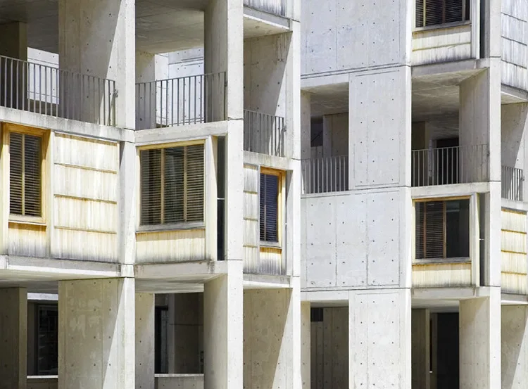 Louis Kahn’s Salk Institute exemplifies meticulously executed minimalism. A conservation program conducted by the Getty Conservation Institute examined, tested, and repaired the teak window walls, salvaging most of the original materials and creating a long-term maintenance plan rather than completely replacing them. This project serves as a model for material-first interventions in modern buildings.