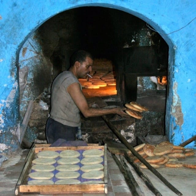 In North African medinas, many neighborhoods still rely on public bakeries (farrān). Families prepare dough at home and bring it to the local bakery, where a specialist community bakes bread. This arrangement concentrates heat, saves fuel, and turns bread baking into a social routine. Recent fieldwork has revealed that cities such as Chefchaouen have numerous active communal bakeries, and ethnographic studies in Morocco describe the daily operations of these spaces.