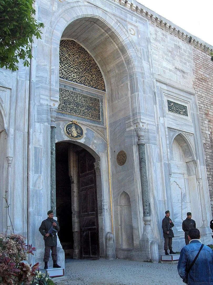 It is the entrance gate of the Harem located in the second courtyard. The inscription dated 1586 on the door states that Murad III (1574-95) expanded the Harem. It was also called Kızlar Kapısı (Girls’ Gate) because it was the gate used by high-ranking Harem women on their return from summer palaces or by Valide Sultans whose sons were sultans when entering the Harem.