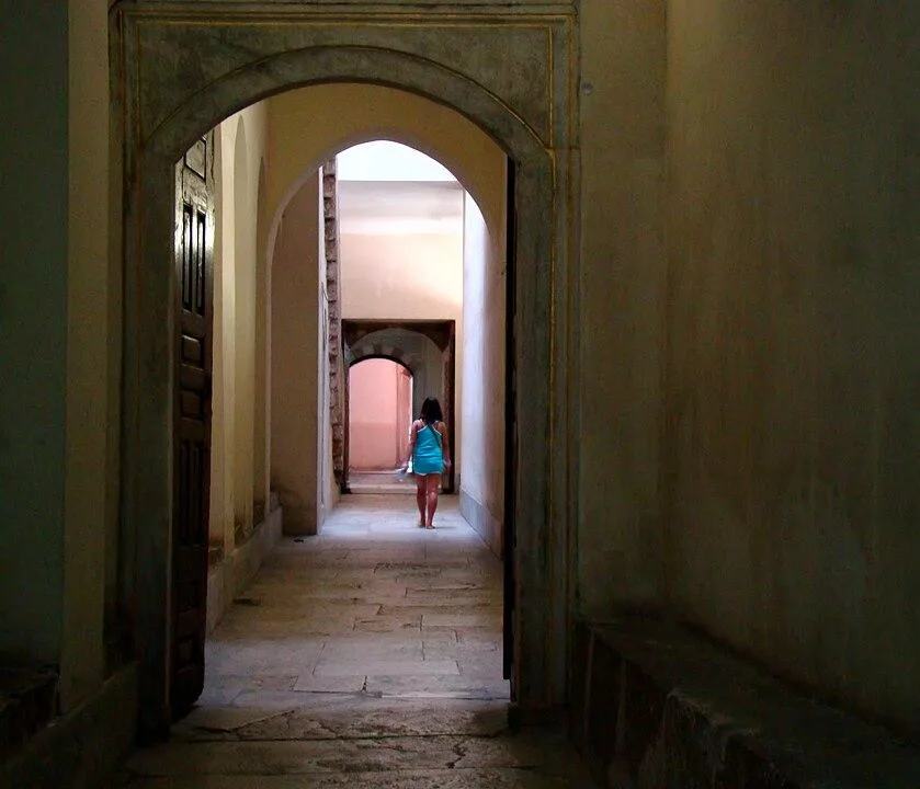 The part of the Harem where women lived was entered through the corridor of concubines. The black aghas would place the food cooked in the kitchens and delivered in trays on the counters seen here, and after they left, the concubines in charge would distribute the food to the Harem in a hierarchy.