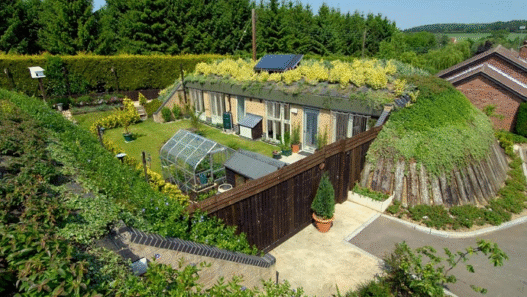 Situada en la exuberante campiña del Reino Unido, Eco-House es un ejemplo pionero de arquitectura sostenible. Al abrigo de la tierra, está diseñada para cumplir estrictas normas medioambientales, utilizando fuentes de energía renovables y sistemas inteligentes de gestión del agua. En el tejado de la casa, cubierto de tierra, se ha plantado vegetación natural, creando un hábitat natural para la fauna local y proporcionando aislamiento al mismo tiempo.