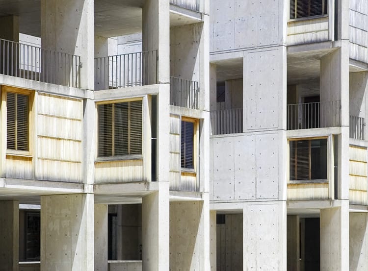 El Instituto Salk de Louis Kahn muestra un minimalismo aplicado con meticulosidad. Un programa de conservación llevado a cabo por el Instituto de Conservación Getty examinó, probó y reparó las paredes de las ventanas de madera de teca, recuperó la mayor parte de los materiales originales y elaboró un plan de mantenimiento a largo plazo en lugar de renovarlas por completo. Este proyecto constituye un modelo para la intervención prioritaria en los materiales de los edificios modernos.