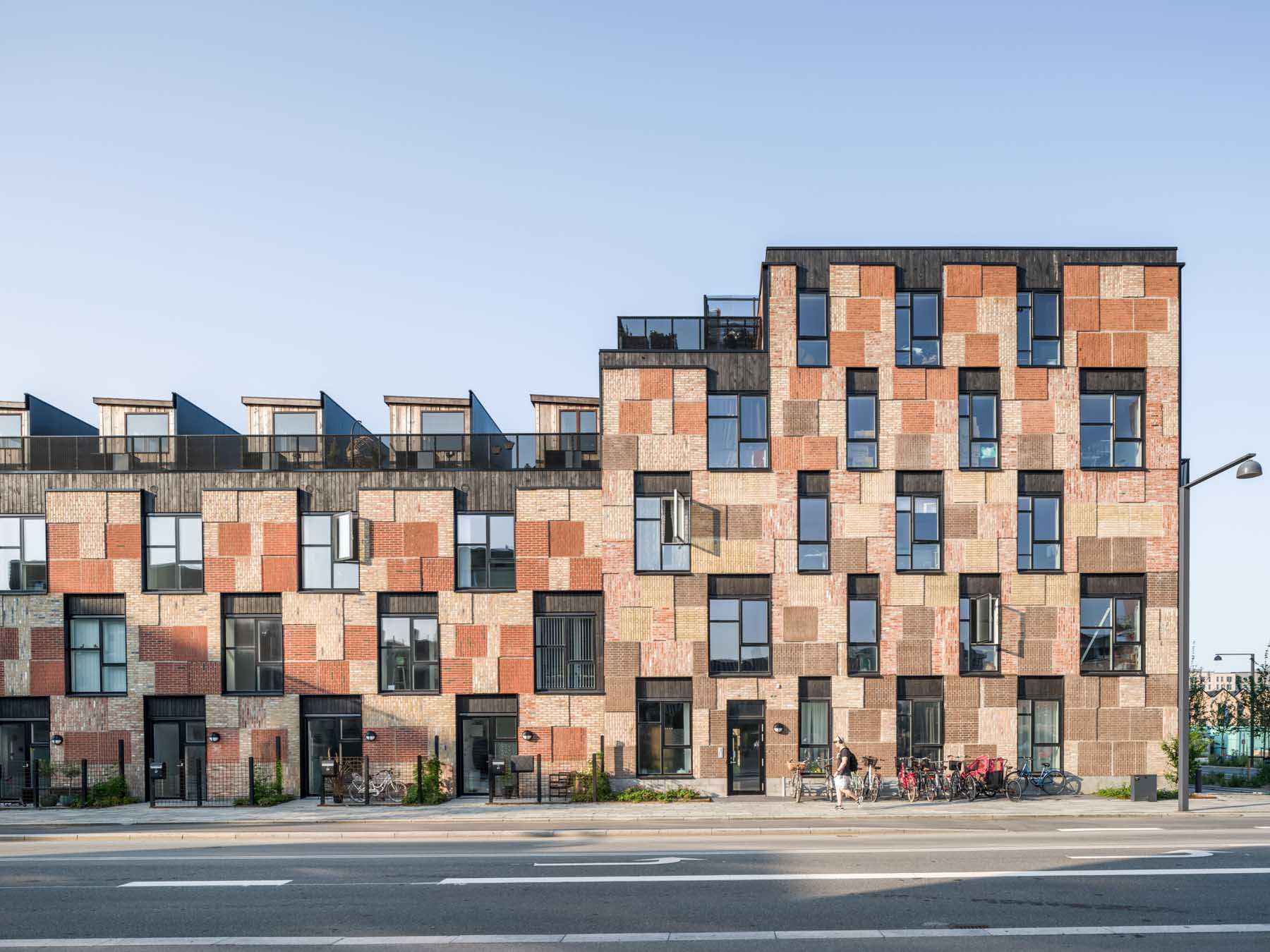 El Grupo Lendager transformó los ladrillos y la madera obtenidos de grandes zonas de demolición en nuevos sistemas de fachadas e interiores, con el apoyo de análisis de ciclo de vida (LCA) y de costes tras su finalización. Este ejemplo muestra cómo la transformación industrial puede reducir los impactos concretos al tiempo que cumple con la calidad arquitectónica.