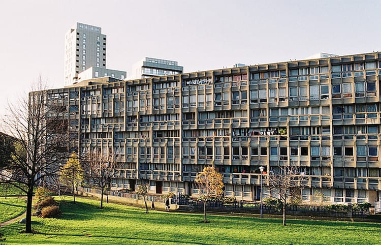 Le brutalisme trouvait son origine dans l’utopisme social : des logements collectifs, des centres civils et des institutions ambitieux conçus pour tout le monde. Des architectes tels qu’Alison et Peter Smithson ont conçu Robin Hood Gardens à Londres avec de longues « avenues célestes » communes, des allées en béton brut destinées à servir de cour commune pour les familles de la classe ouvrière. Ces « rues » ont été construites comme des lieux de rencontre semi-publics et réalisées en béton brut, reflétant la croyance en la vie collective. Des abris du Maggie Daley Park à Chicago au Lincoln Center à New York, les premiers projets brutalistes ailleurs avaient des objectifs similaires. Les fondements socialistes de ce style sont bien documentés : les bâtiments devaient être honnêtes et généreux, offrant un logement et des services de manière simple.
