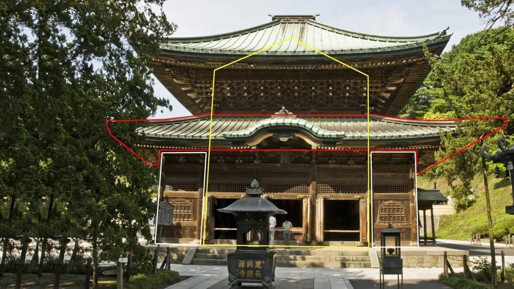 Cet espace est particulièrement répandu dans les temples bouddhistes zen, où il forme un couloir d’une largeur de 1 ken, au même niveau que le moya. Il remplit une fonction similaire dans les pagodes telles que le Tahōtō. Les couloirs ou vérandas ouverts sous des toits élargis ou séparés peuvent également être appelés hisashi.