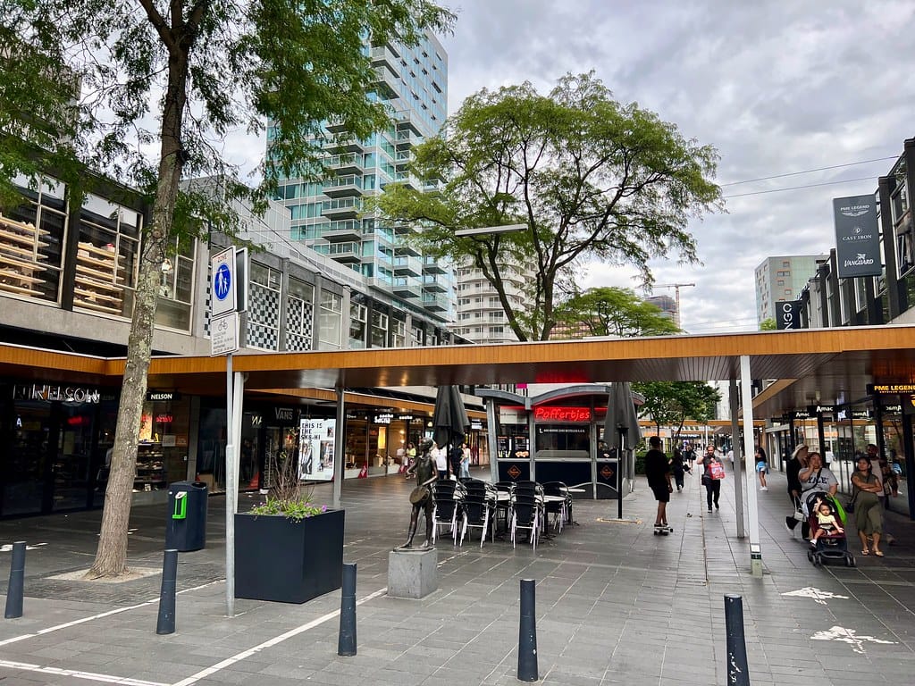 Sul posto, l’ottimismo si è manifestato con esperimenti coraggiosi. La via pedonale Lijnbaan di Rotterdam ha dato vita a una nuova idea per un centro bombardato: restituire la strada alle persone, separare le auto e creare un vivace centro commerciale che favorisse la ripresa. Non era una soluzione perfetta, ma ha dimostrato che una città può reinventarsi rapidamente grazie a chiare iniziative di progettazione urbana e a una volontà civica condivisa.