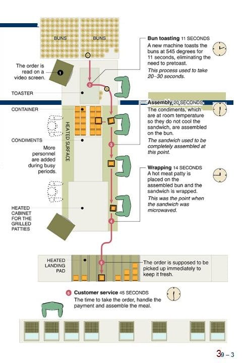 - Pianificazione dei picchi di carico: I progettisti devono analizzare i periodi di punta (“ore di punta”) e assicurarsi che i corridoi siano in grado di gestire le attività simultanee (due cuochi che trasportano i vassoi, i server che restituiscono i piatti usati, il personale di pulizia con le carriole). Ciò può significare la presenza di doppi lavandini o postazioni di lavoro vicino alle finestre di servizio e di uno spazio extra nei corridoi. Molte catene di fast-casual (Chipotle, Popeyes, McDonalds) utilizzano una disposizione lineare della cucina a “catena di montaggio”, in modo che più personale possa lavorare in sequenza su un percorso comune in linea con il flusso continuo dei clienti. I progettisti di fast-casual tengono conto anche delle code dei clienti, posizionando le postazioni self-service (bevande, condimenti) separatamente dai commensali seduti dopo la fila per le ordinazioni, per evitare che le code tracimino nei corridoi del cibo.