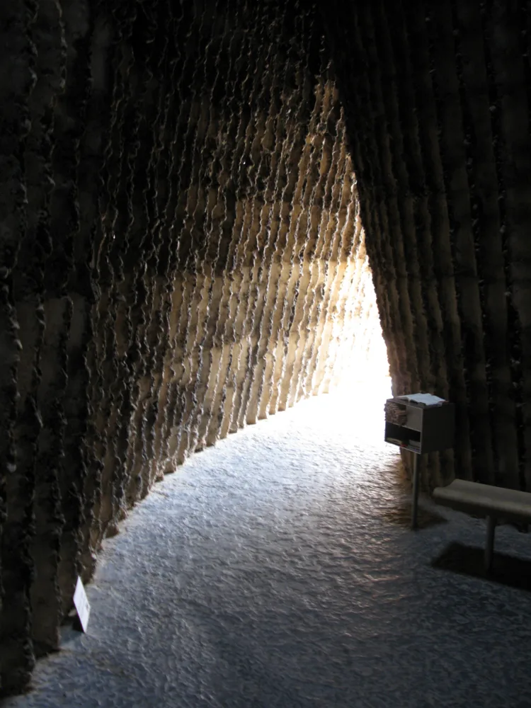 ピーター・ズントーの「ブルダー・クラウス・フィールド・チャペル」(ドイツ)の内部空間は、粗く炭化したコンクリート壁で構成されている。不規則な質感と重厚な質量が、静かで親密な音響環境を生み出している:高周波音は炭化した突起によって吸収・拡散され、堅牢な壁が外部騒音を遮断する。その結果、「温かみのある」静寂が生まれます。足音やささやきは柔らかく聞こえ、こもりもせず、空間は隔離されているものの、生き生きとした印象を与えます。
