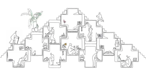 このプロジェクトの主な特徴は、柔軟性と適応性で、異なるユニットを統合することができる。 中国の私有財産法では、このような複数の住戸は厳しい制限を受けることが多いが、リウ・ルビンのデザインは、このような制限を克服する可能性を秘めている。 したがって、異なる機能を持つユニットを組み合わせて、より広く機能的な空間を作り出すことが可能になる。