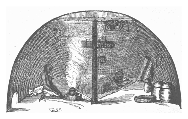 乾燥地帯: 砂漠では、極端な気温や温度変化に対する断熱のために厚い茅葺き屋根が使われ、屋根の設計に水利用技術が組み込まれている。 アフリカでは、丸い小屋は木製のポールフレームに藁や草を複雑に編んで作られている。 東アフリカ、ケニアのキクユ族の 小屋は、 アラン・アラン(Imperata cylindrica )などの草やサトウキビの葉で編まれている。 南アフリカ周辺のズールー族に典型的なイククワネ 小屋は、細い棒を曲げてドームを作り、その周囲に草をしっかりと編み込み、茅をコイル状のロープで縛って安定させている。