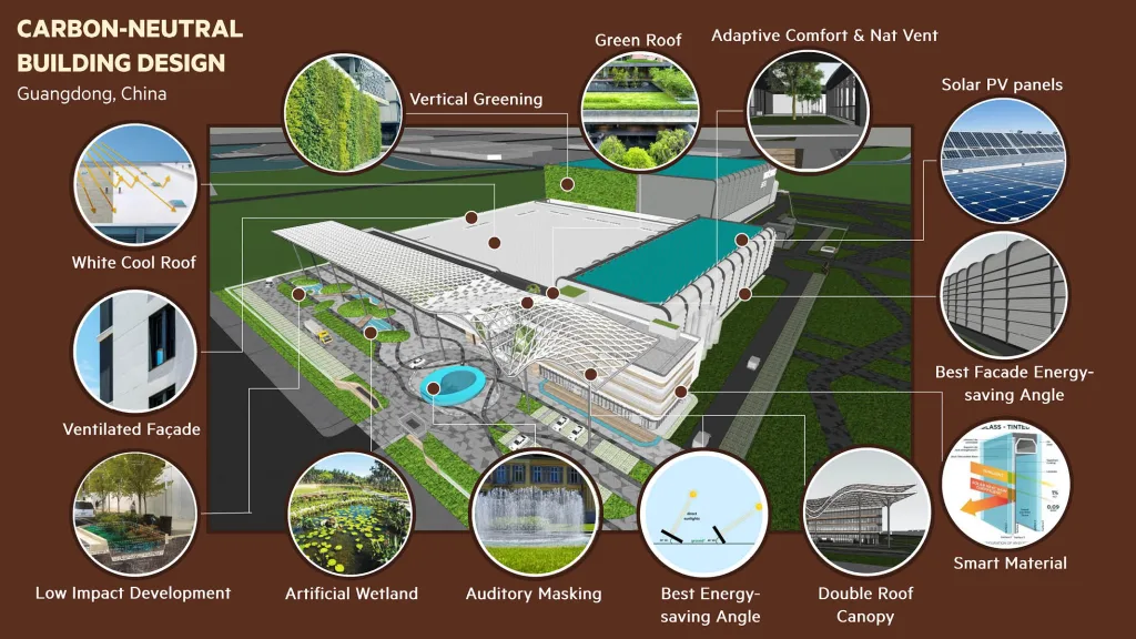 Binalarda, tüm yaşam döngüsü boyunca ortaya çıkan karbonu hesaplarız: malzeme üretimi ve projenin inşasından kaynaklanan karbon (dahili karbon, “ön karbon” dahil), binayı işletmek için kullanılan enerji ve kullanım ömrü sonu aşaması. Karbon nötr veya net sıfır projeler bu toplamları dengeler. Karbon negatif projeler, malzemelerde karbon depolayarak ve emisyonlarının ötesinde ekstra karbonu ortadan kaldırarak daha da ileri gider. WorldGBC, malzemelerden kaynaklanan ön emisyonların, şu andan 2050’ye kadar yeni binaların karbon emisyonlarının yaklaşık yarısını oluşturacağını vurgulamaktadır, bu nedenle tanımlar sadece enerjiyi değil, somut karbonu da içermelidir.