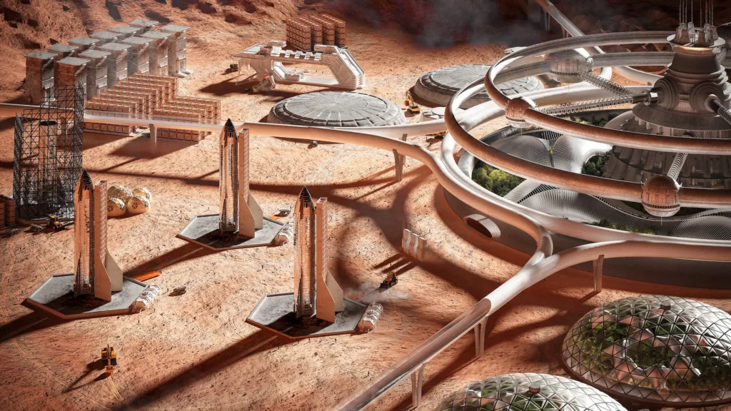 Mimarlar ve mühendisler tüm bunları inşa edilebilir sistemler ve uzun vadeli planlar halinde bir araya getiriyor. Kamu kurumları ortak yol haritalarını koordine ederken, endüstri araçları ve inşaat yöntemlerini geliştiriyor. NASA’nın Ay’dan Mars’a mimari belgeleri, kampanyalar arasında parçaları bir araya getiriyor; SpaceX gibi özel aktörler, yüzey altyapısı talebini artıracak kargo ve daha sonra insanlı uçuşları kamuoyuna duyuruyor. Sonuç, mimariye somut bir zaman çizelgesi ve ortaklar sağlayan, paylaşılan ve gelişen bir özet.