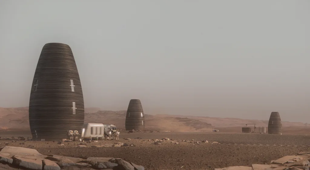 Tasarım araştırmaları, ikna edici erken dönem habitat tipolojileri ortaya çıkarmıştır. NASA’nın 3D Baskılı Habitat Yarışması’nın galibi AI SpaceFactory’nin MARSHA projesi, basıncı tutarken ışığı geçiren yüksek, katmanlı kabukları araştırmıştır. SEArch+ ve Clouds AO tarafından tasarlanan Mars Ice House, güçlü radyasyon performansı ve insancıl bir iç mekan sunan yarı saydam bir kalkan olarak su buzunun basılmasını önermiştir. Her iki proje de mimariyi yerel malzemeler ve otomatikleştirilmiş inşaatla birleştirerek erken dönem görevler için pratik bir yol sunmaktadır.