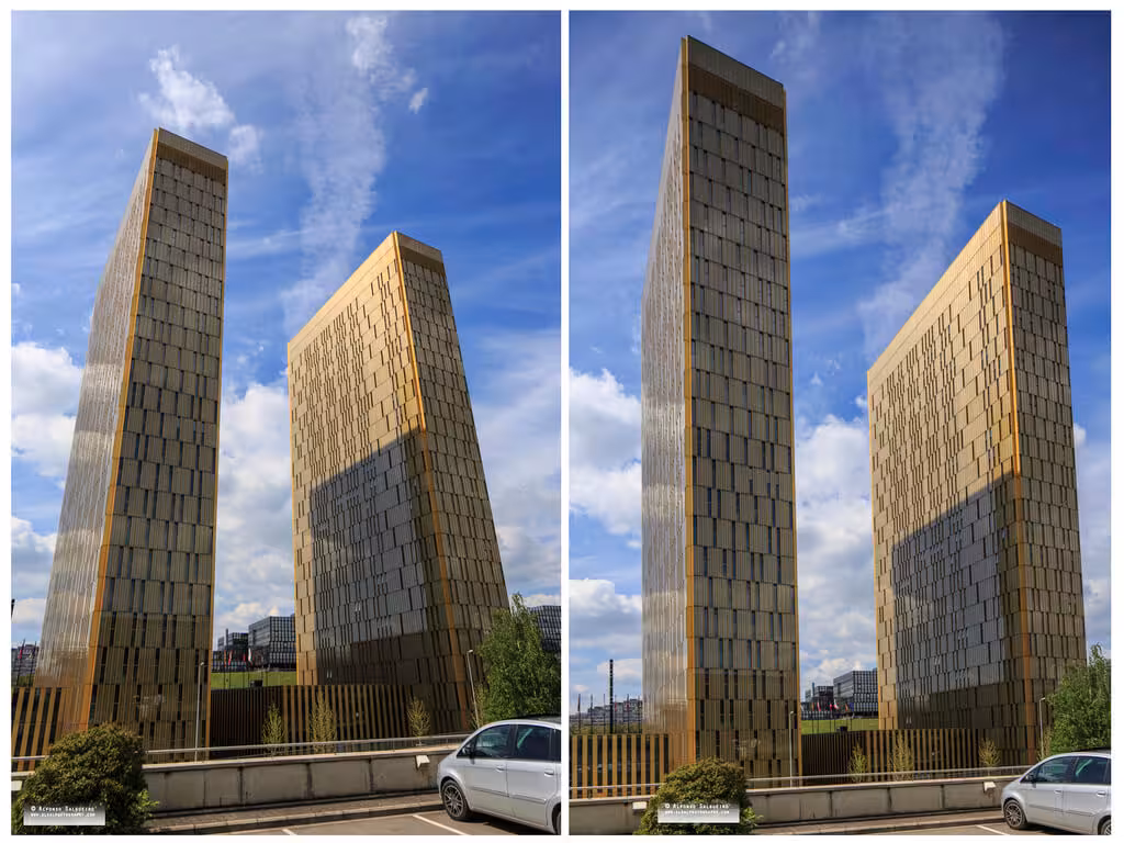 Mimaride düz çizgiler sadece geometri değildir; projenin grameridir. Dikey çizgileri paralel tutmak, kütle ve orantının gerçekliğini korur. Bu nedenle belgesel standartları, keystoning’i yaratıcı bir süsleme değil, kaydın bozulması olarak değerlendirir. Yakınsama, hız veya baskı hissi vermek için kasıtlı olarak kullanılabilir, ancak bu, binanın dengesiz veya tasarlananından daha küçük görünmesine neden olabilir. Kamerayı düz tutan veya görüntü dairesini kaydıran araçlar kenar bütünlüğünü korurken, ağır sonradan düzeltme dokuları uzatabilir ve alanı sıkıştırabilir. Yakınsamayı, kaldırım açınızı zorladığı için değil, tasarım tezini desteklediği için retorik olarak kullanın.
