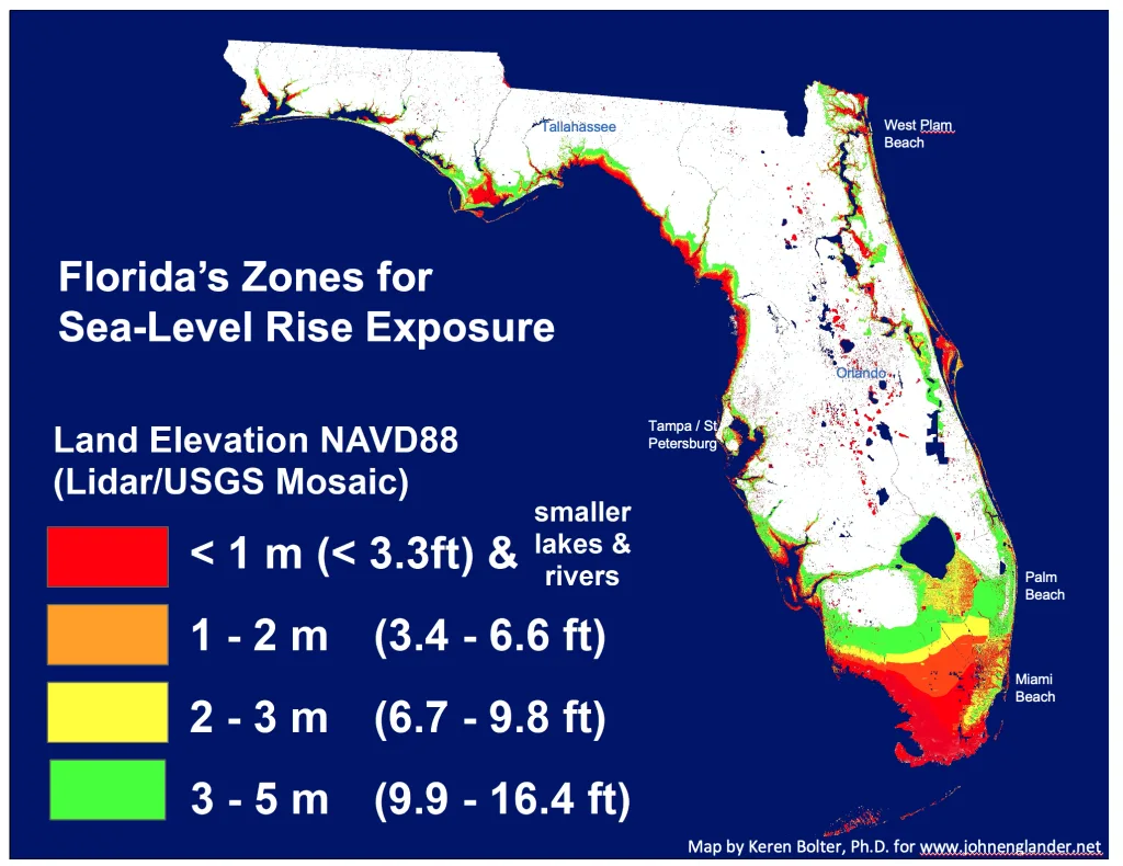 Maruz kalma tehlikesini artırır. Güney Florida düz ve alçaktır ve kıyı şeridi yoğun bir şekilde gelişmiştir. 2000 yılından bu yana, Güneydoğu ve Körfez kıyılarında yüksek gelgit sel günleri keskin bir şekilde artmış ve periyodik sokak kapatmaları evler, işyerleri ve acil servisler için tekrarlayan bir operasyonel sorun haline gelmiştir. Bu eğilimler iyi gözlemlenebilir, mevsimseldir ve istisna olarak değil, tasarım parametresi olarak ele alınması gereken kadar öngörülebilirdir.
