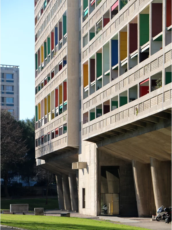 Savaş sonrası Avrupa’nın yıkıntıları arasında, mimarlar betonu “acımasız” göründüğü için tercih etmediler. Onu kullandılar çünkü oradaydı, ucuzdu ve çok büyük ölçekte hızlı bir şekilde dökülebiliyordu. Çelik ve kaliteli kereste kıt ya da sıkı kontrol altındaydı, bu nedenle ham, yerinde dökme beton (béton brut) konut sıkıntısına pratik bir çözüm oldu. Fransa’nın en ünlü örneği, Le Corbusier’in Marsilya’daki Unité d’Habitation binası, savaş sonrası çeliğin çok pahalı olduğu ortaya çıkınca, umulan çelik iskeletten betonarmeye geçildi; sonuçta yüzlerce aile, dükkanlar, bir okul ve bir çatı terası ile pilotis üzerinde barındı; tek bir blokta şehir hayatı.